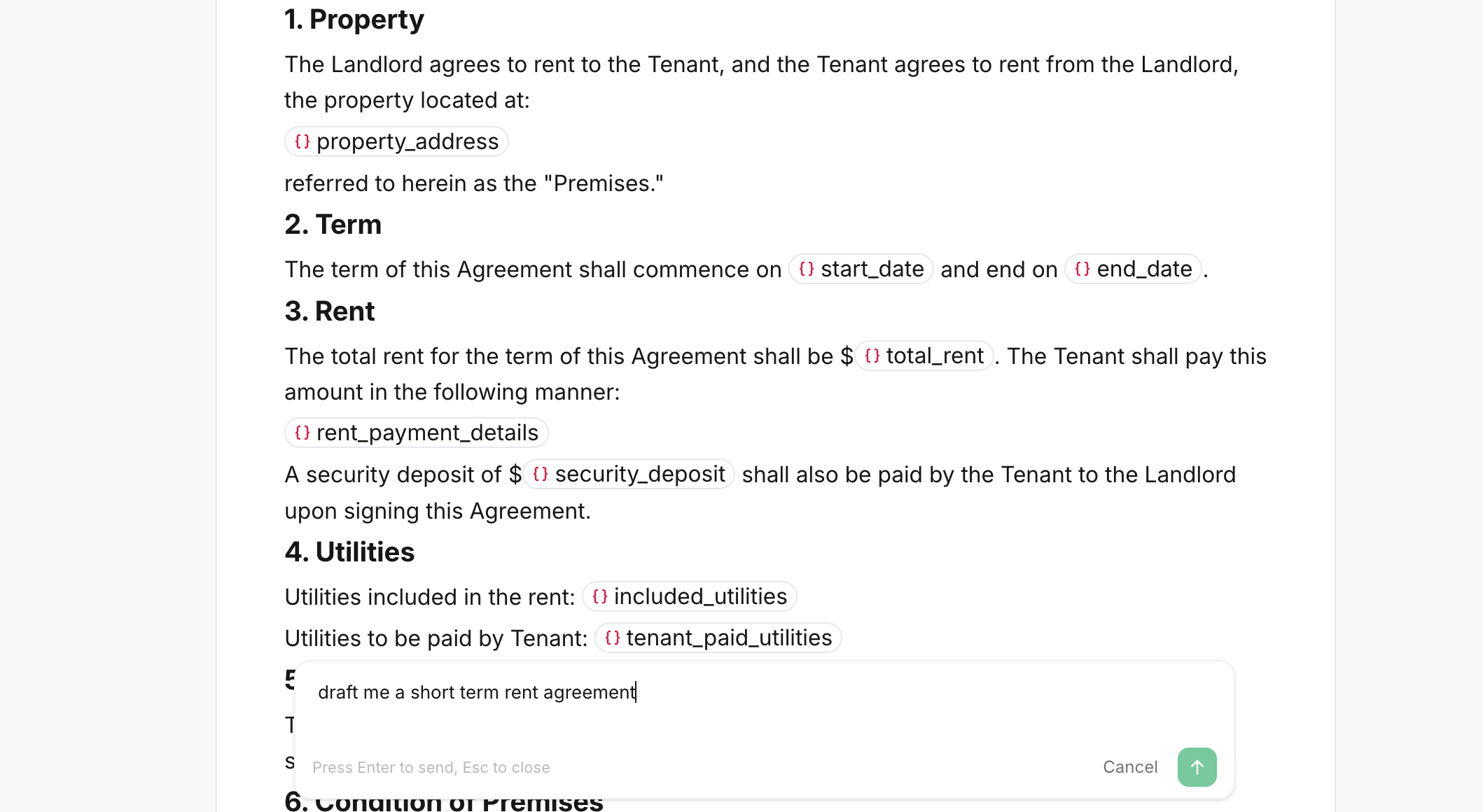The document editor now includes an AI prompt that can draft, rewrite, and refine document content directly inside the editor, so you can produce polished quotations, proposals, and contracts much faster.